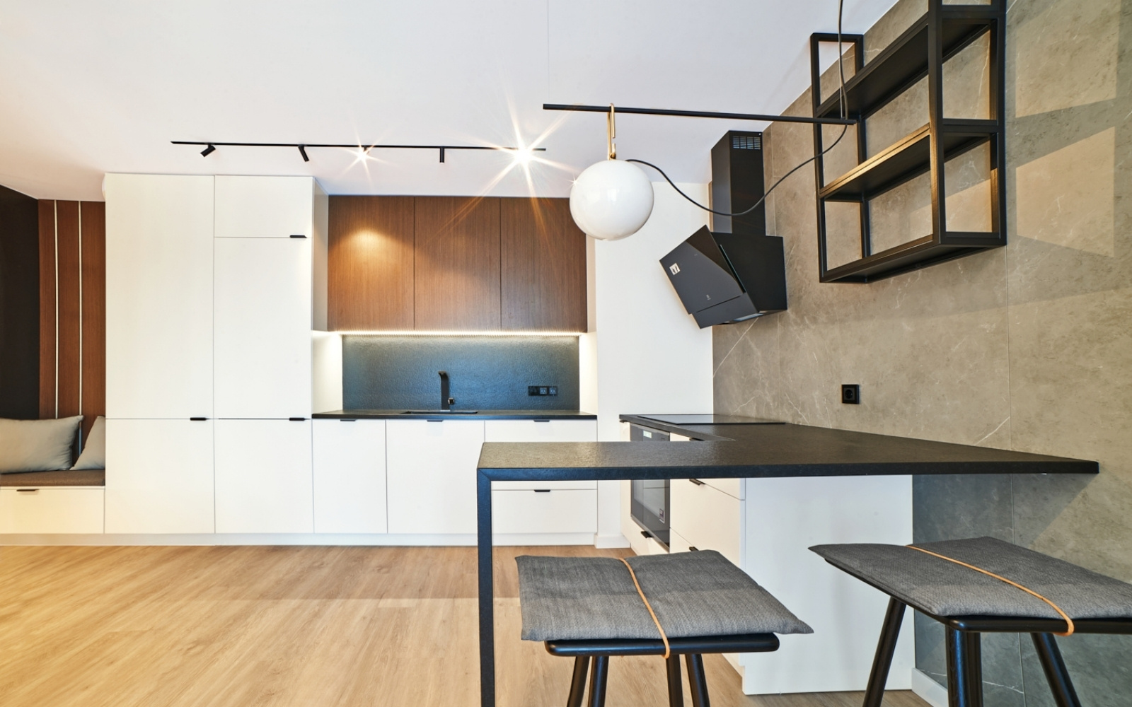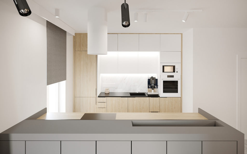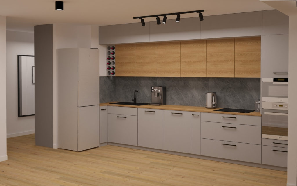 W SaniWell każde z wnętrz jest projektowane przez architektów i projektantów. Następnie nasza firma odpowiada za wykończenie, umeblowanie i wyposażenie mieszkania. Oddawane wnętrza są gotowe do zamieszkania. Podczas wymiarowania i rysowania zabudowy kuchennej uwzględniane są indywidualne cechy jak wzrost, ale też przyzwyczajenia i potrzeby użytkowników. W końcu niektórzy z nas gotują bardzo dużo i często, inni wolą mieć miejsce do pracy w kuchni, dla pozostałych może być ważny design, a dla niektórych istotna jest ilość miejsca do przechowywania. Co więcej, są również klienci, dla których wszystkie z wymienionych wytycznych są równie istotne. Dlatego rola architekta w procesie planowania kuchni jest nieodzowna, natomiast za wykończenie, wykonanie mebli na wymiar i pełne wyposażenie kuchni jest odpowiedzialna nasza firma.