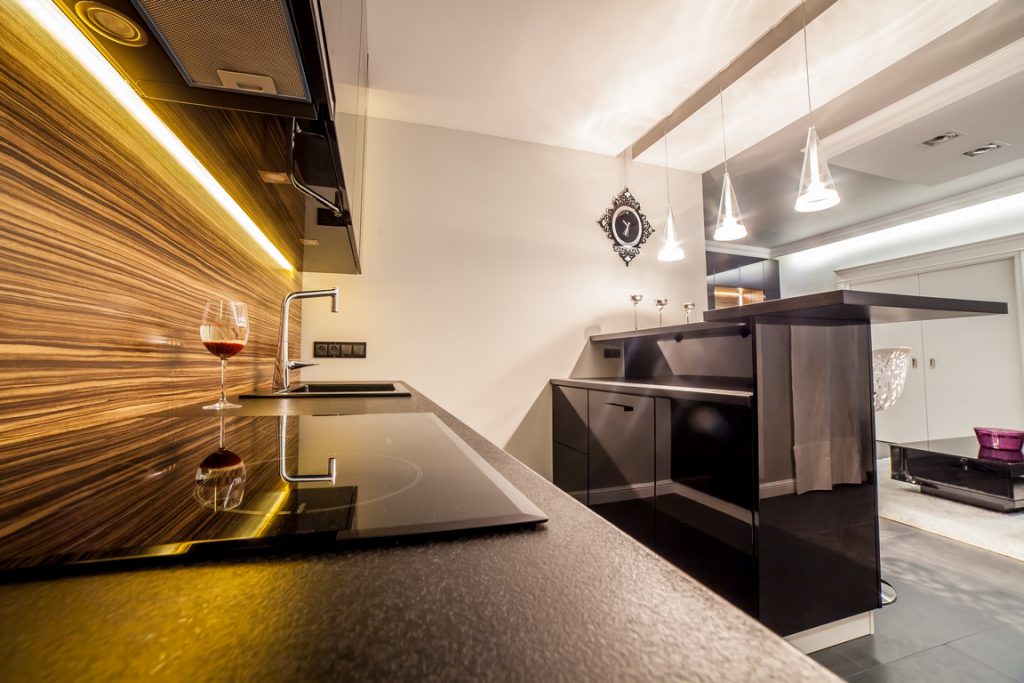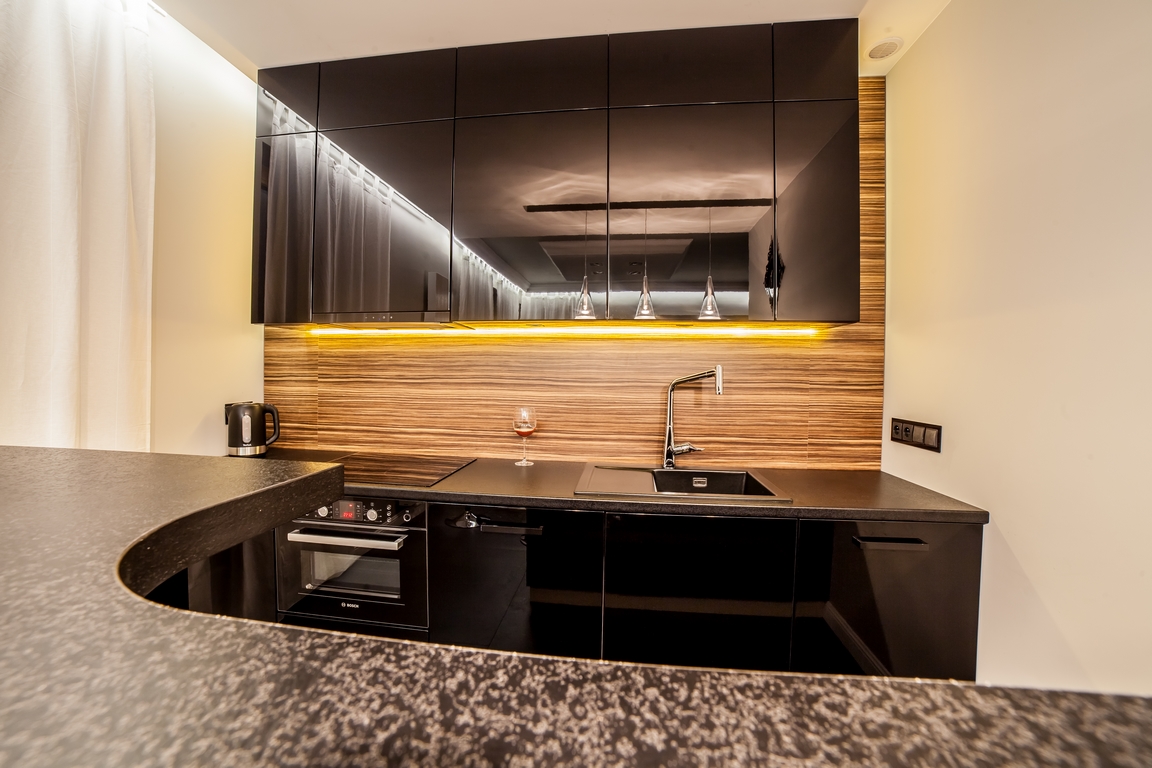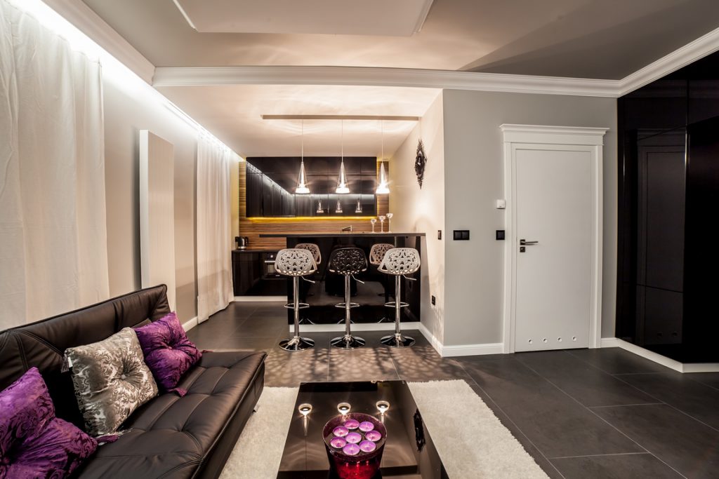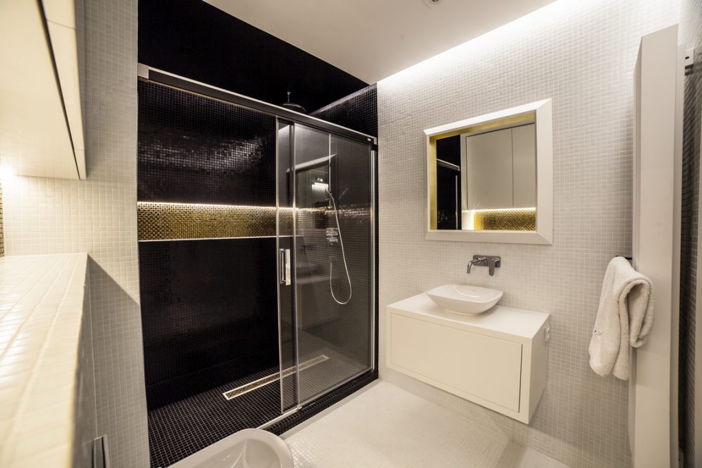 Prace nad realizacją tego apartamentu trwały 4 miesiące. Warto było czekać! Założeniem było zaprojektowanie i zrealizowanie mieszkania w wysokim standardzie, wykorzystując produkty najlepszych światowych marek. Lakierowane meble, specjalnie skonstruowane łóżko, wysokiej klasy sprzęty AGD, w tym oryginalny model klimatyzatora LG Artcool Gallery nadały temu wnętrzu elegancji i prestiżu. Dodatkowo jasna łazienka, zdobiona złotą mozaiką. Piękne lustro łazienkowe wykonał jeden z najlepszych krakowskich projektantów jako pojedynczy, autorki egzemplarz. Armatura łazienkowa znanych marek: Villeroy&Boch, Huppe oraz Hansgrohe Axor. Są to produkty, które zachwycają wysoką klasą i jakością.
