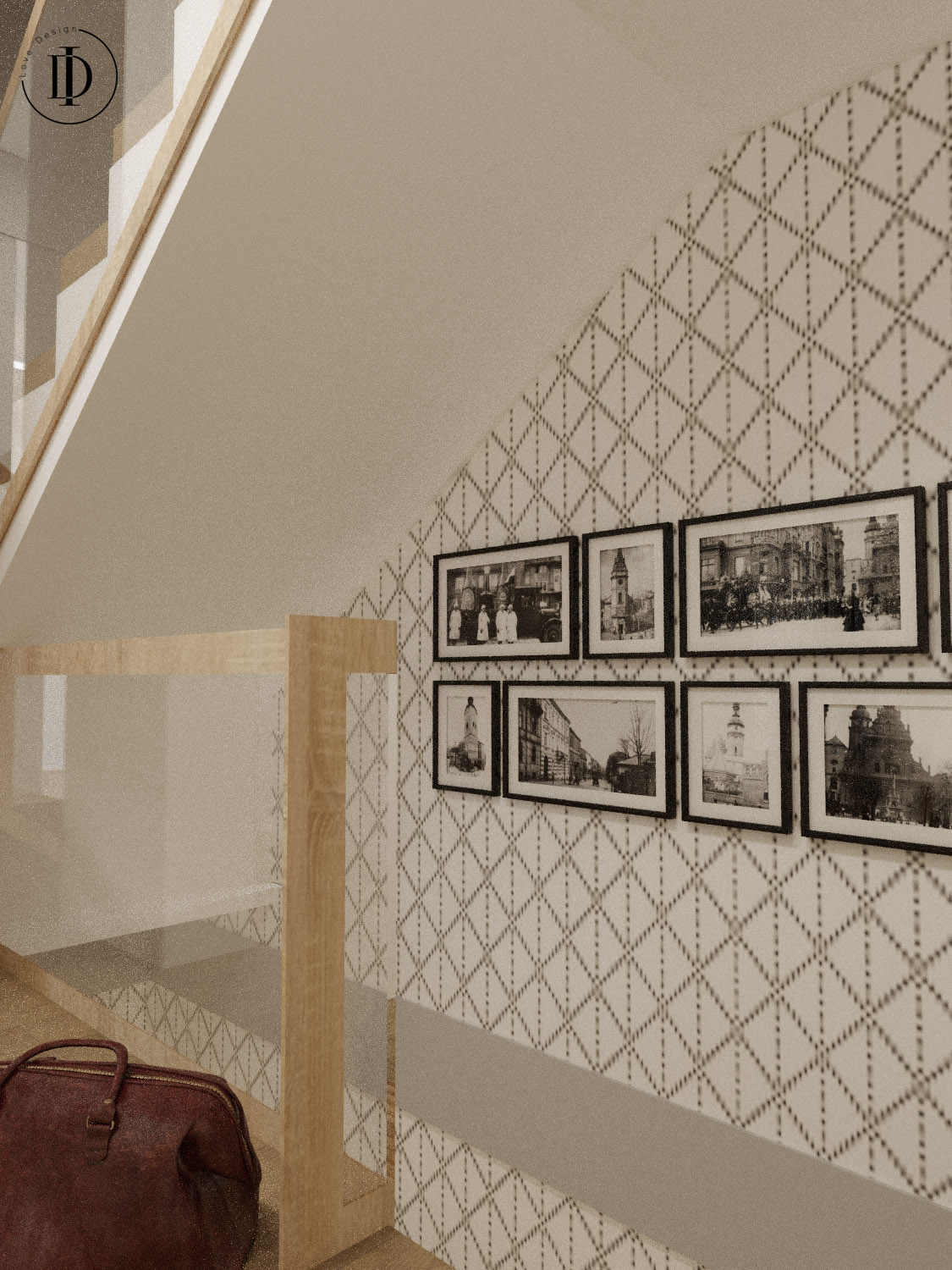 Dom w Wieliczce trafił w ręce projektantki, która lubi łączyć w projektowaniu styl Glamour z nowoczesnością, miękkie formy z prostotą. Po kilku miesiącach współpracy powstało piękne wnętrze. Zaprojektowane wnętrza składają się z przestronnego i jasnego salonu połączonego z kuchnią. Co więcej, już w projekcie zadbano o przestrzeń do spożywania posiłków i relaksu. Na parterze i piętrze są sypialnie, łazienka i toaleta. Ze względu na to, że użytkownikami schodów mogą być również dzieci zostały one zaprojektowane w taki sposób, aby były bezpieczne również dla młodszych mieszkańców.