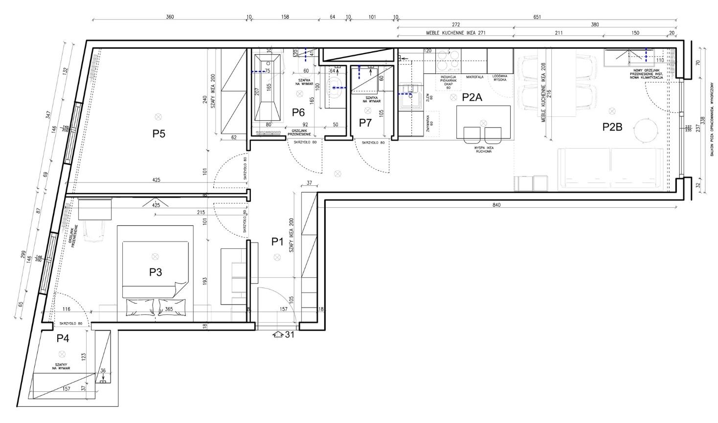 Mieszkanie zlokalizowane w inwestycji Lublańska Park dewelopera Wawel Service liczy 67 mkw. i składa się z trzech niezależnych pokoi, połączonych korytarzem. Dla klienta istotne było, aby całą usługę projektowania, wykończenia i wyposażenia mieszkania móc powierzyć jednej firmie. Równie istotne były kwestie finansowe. Dlatego, aby sprostać możliwościom finansowym inwestora zaproponowano wyłącznie część mebli wykonywanych na wymiar. Pozostałe wyposażenie to produkty gotowe m.in.: z Ikea. Niemniej mieszkanie zostało zaprojektowane , rozrysowane i zwizualizowane, aby zaprezentować efekt finalny wnętrza gotowego do zamieszkania. Następnym krokiem współpracy z SaniWell jest usługa wykończenia, pełnego umeblowania i wyposażenia.
