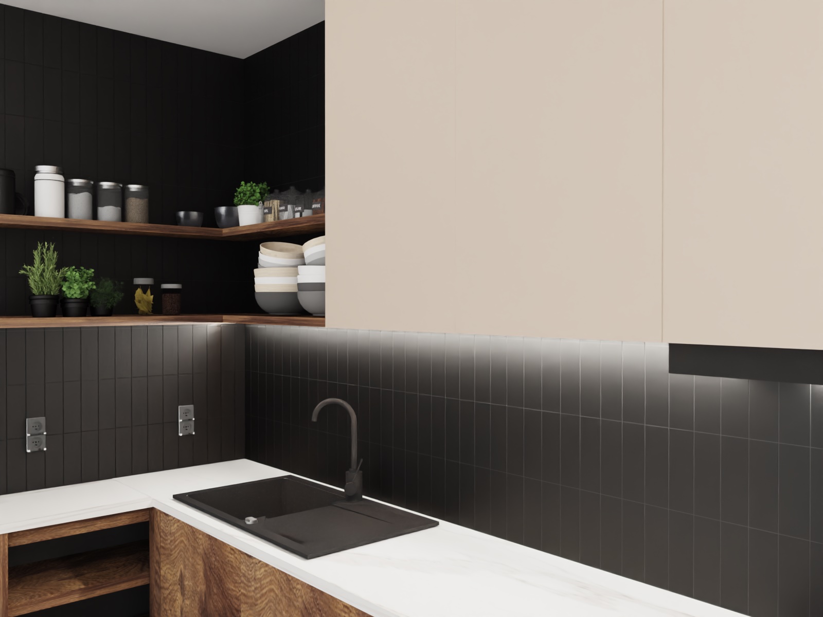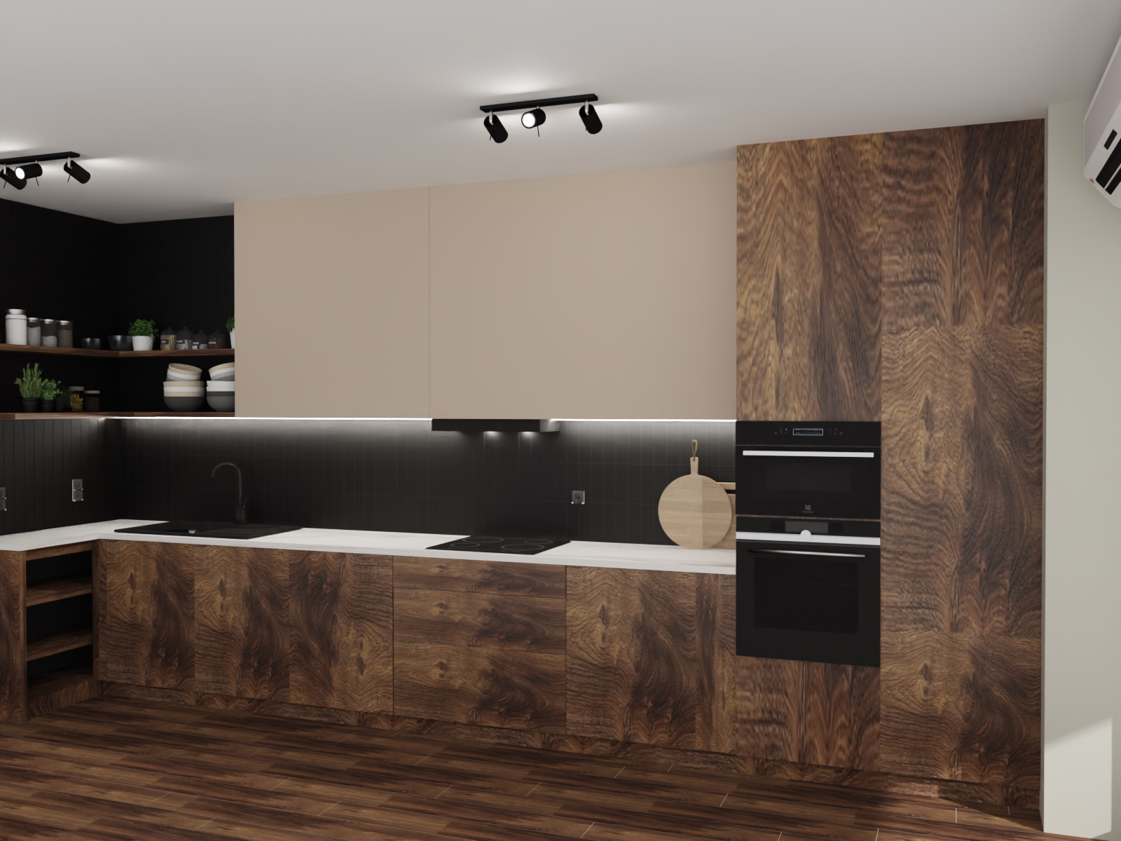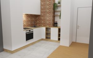 Pakiet KOMFORT umożliwia rozbudowania wykończenia o zabudowę kuchenną.