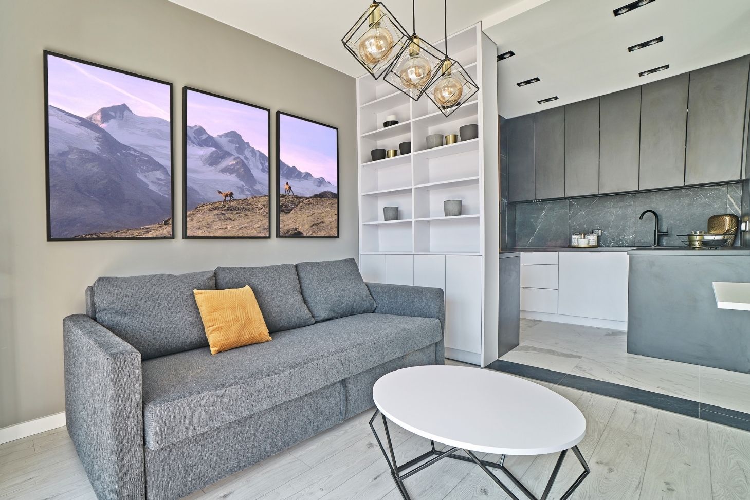 Przedstawione powyżej wnętrze zostało zaprojektowane, wykończone a następnie w pełni umeblowane. Efektem usługi “wchodzisz i mieszkasz” jest wnętrze gotowe do zamieszkania.