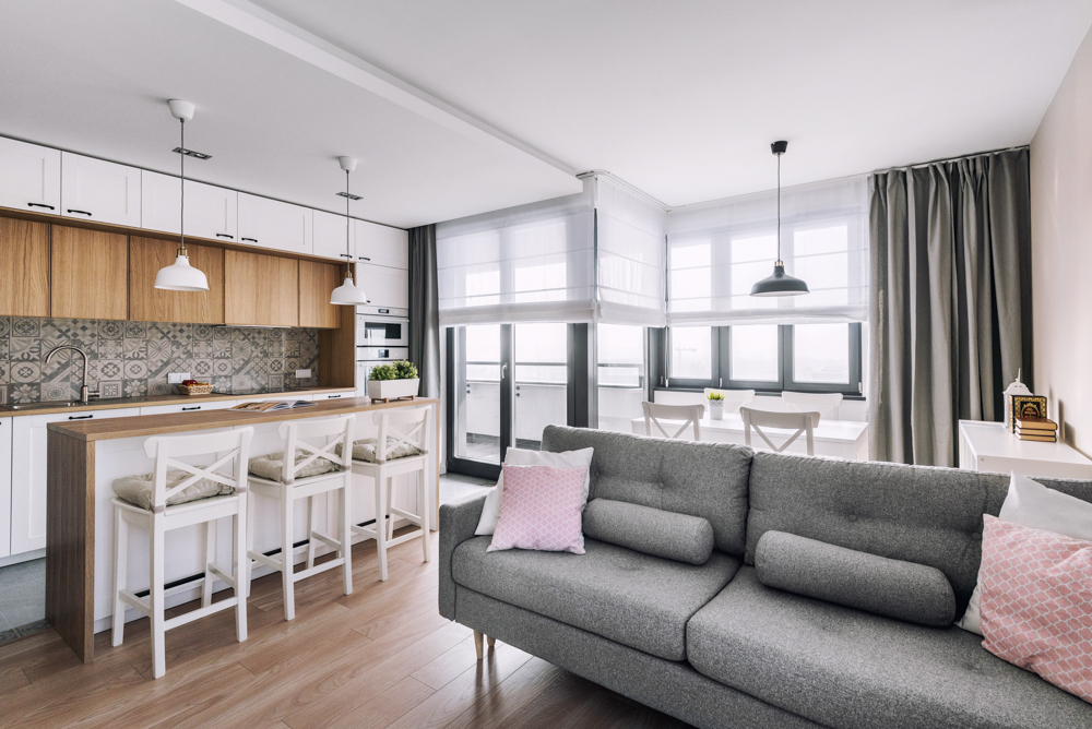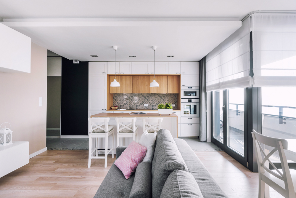 Пожелания заказчика были четко определены: квартира для семьи, оформлена в определенном стиле, с сохранением открытой гостиной с мини-кухней по очень привлекательной цене.