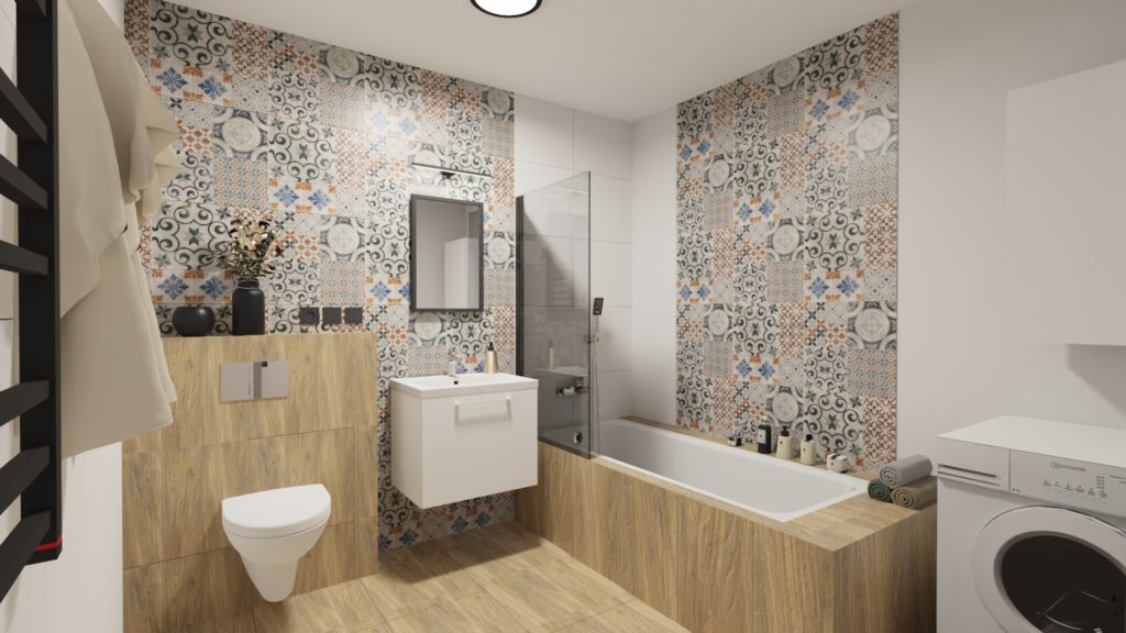 - широкий вибір плитки, яка укладається на всю висоту ванної кімнати,